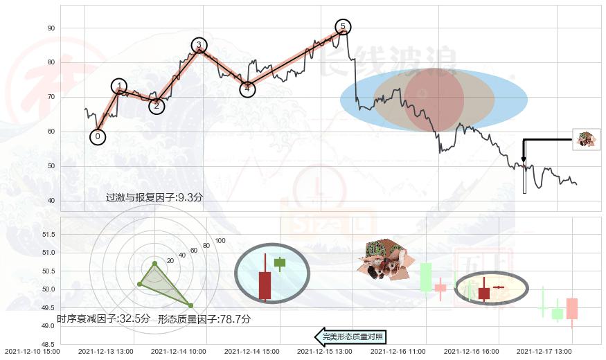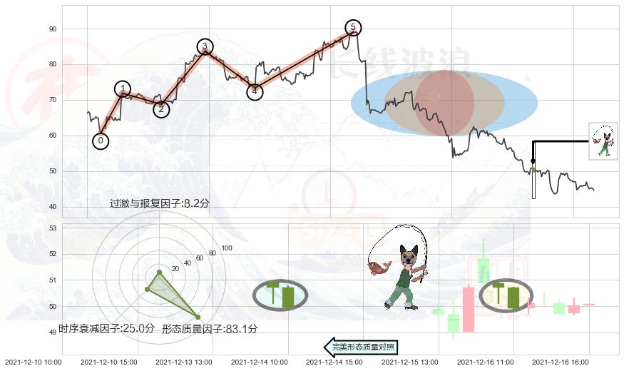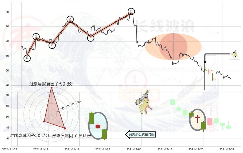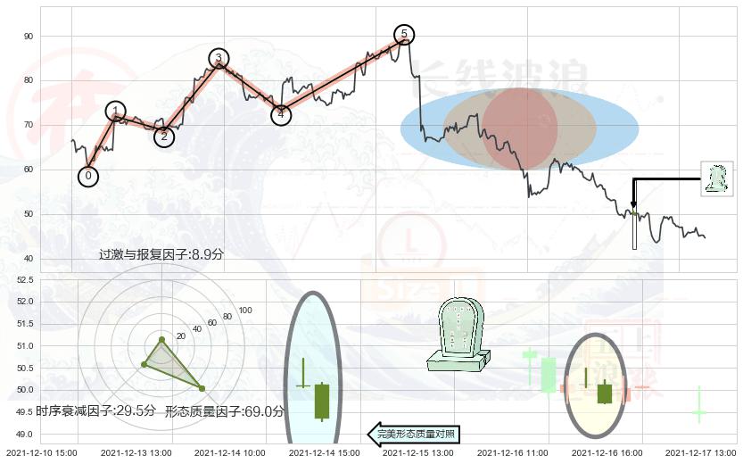 从2021-11-16 12:00至2021-12-27 15:00,共包含199个小时,阶段股价下跌-64.43%,阶段股价变动位移路程比: 1 : 3