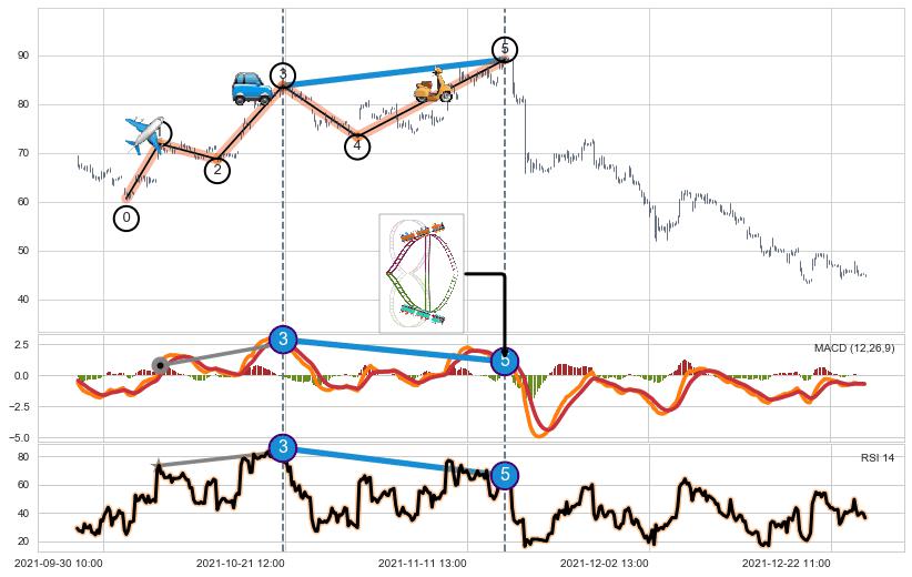 从2021-10-21 11:00至2021-11-16 12:00,共包含123个小时,阶段股价上涨7.55%,阶段股价变动位移路程比: 1 : 14