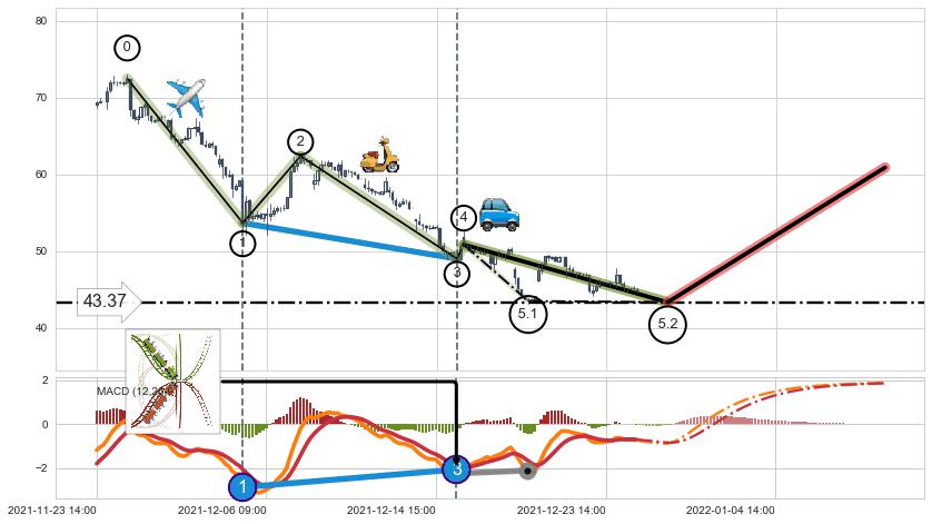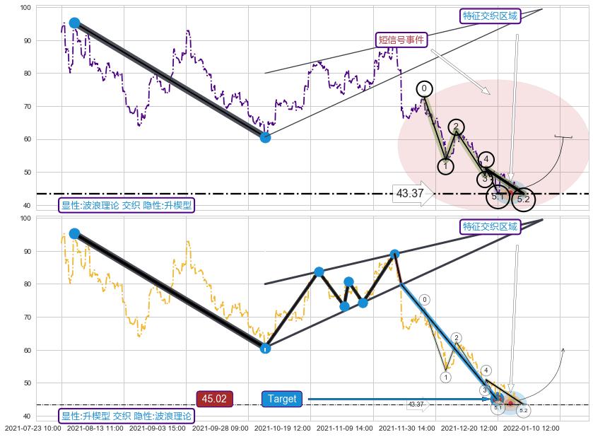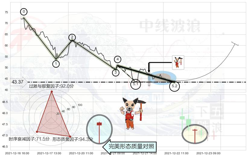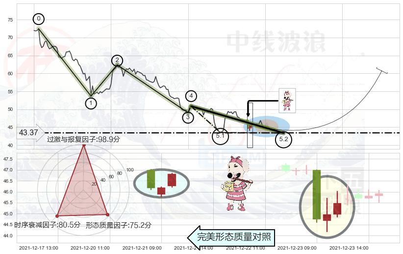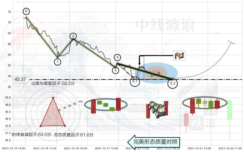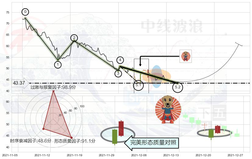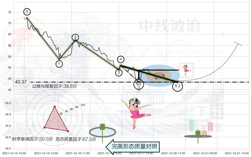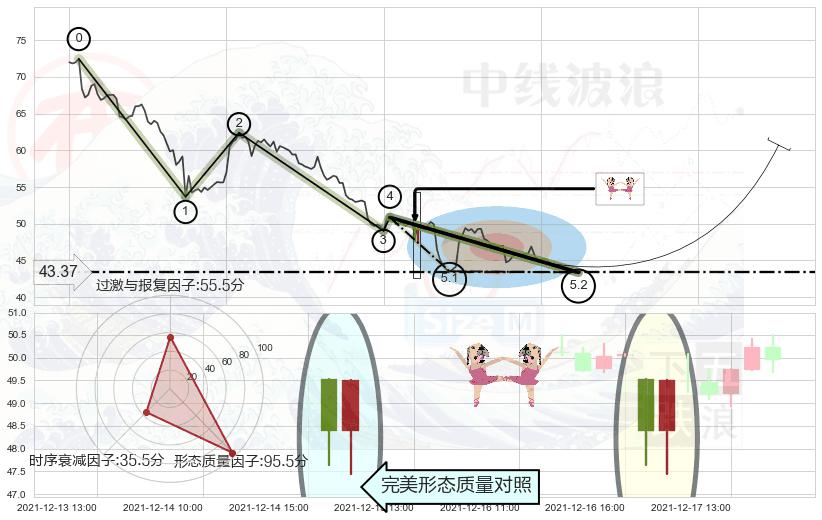 ➣ 5.1: 预测当前第5浪位置(12-20:13, 43.52),仍然有下跌空间