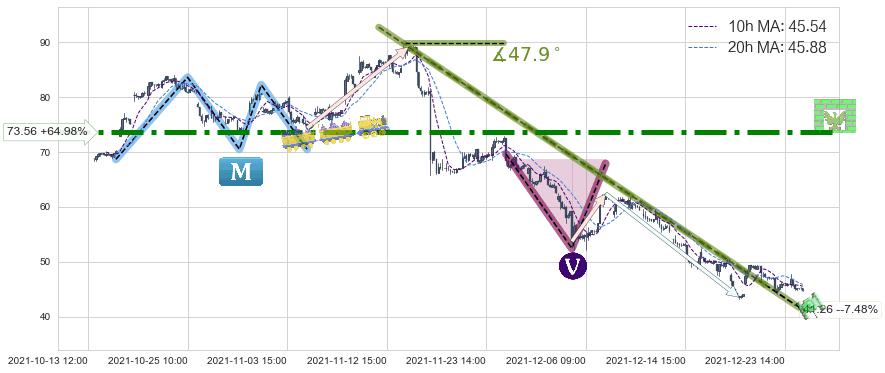 ♘ 阻力价格位73.56,可信任强度95.53%,距离最后交易2021-12-27 15:00形成的收盘价格44.59相差 +64.98%