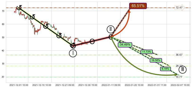 ➣ 大趋势循环浪继续向下概率34.49%