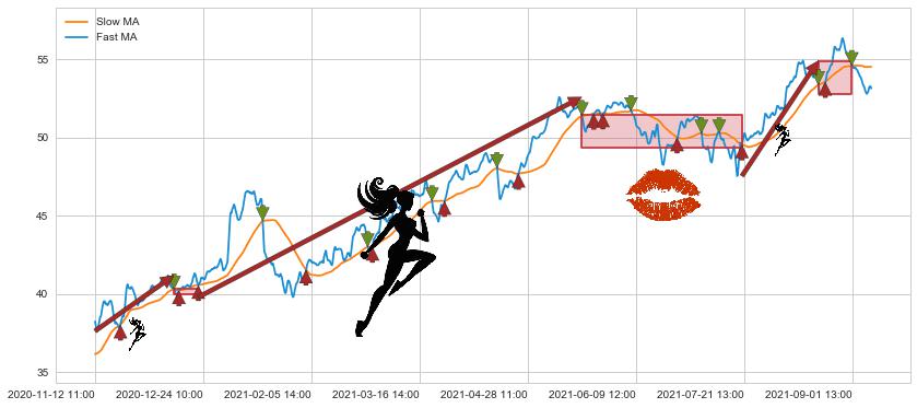 05-18 13:00至07-21 09:00 慢线与快线多次接触,存在上下穿越,有缠绕