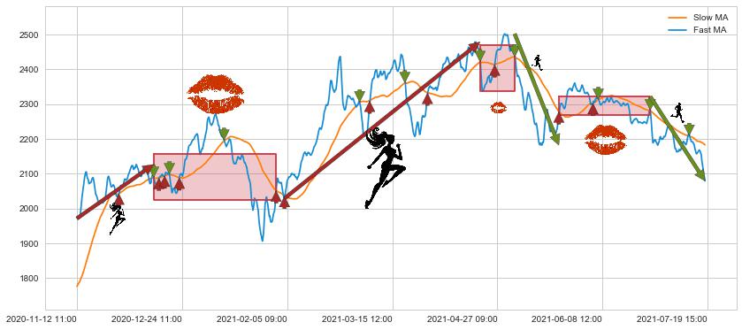 05-20 10:00至06-25 15:00 慢线与快线多次接触,存在上下穿越,有缠绕