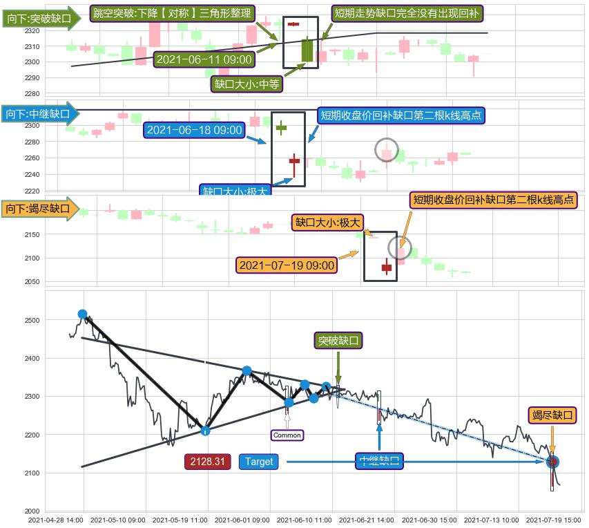 ➢ 2021-07-19 09:00形成:向下跳空【竭尽】缺口