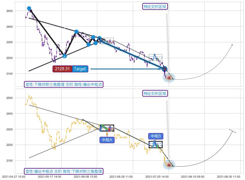 ➢ 下降对称三角整理与缠论中枢点信号事件周期长度级别相同,同周期信号事件