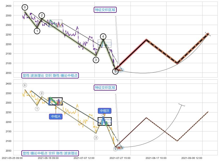 ➢ 波浪理论与缠论中枢点信号事件周期长度级别相同,同周期信号事件