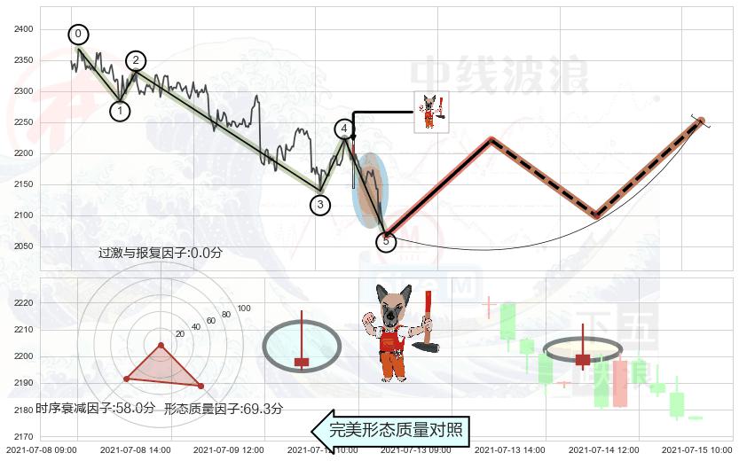 ➢ 🕰 价格走势在2021-07-14 09:00:00至2021-07-14 09:00:00期间形成看涨(低位)倒锤头线,残存影响值:2.42