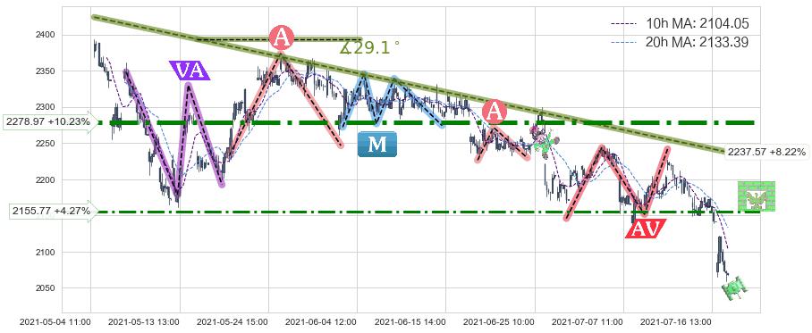 ♘ 阻力价格位2155.77,可信任强度56.19%,距离最后交易2021-07-19 15:00形成的收盘价格2067.55相差 +4.27%