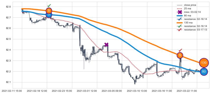 📝 多条均线形成死叉后走势最低价格达到: 82.11