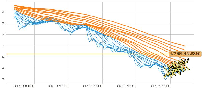 ➢ 34小时均线于(12-21 15:00: 59.63)形成【金叉】基于【金叉历史模型】预测金叉后最高波峰价格: 61.47, 金叉后最高价格60.84,尚未达到预测最高波峰价格, 预期继续上涨