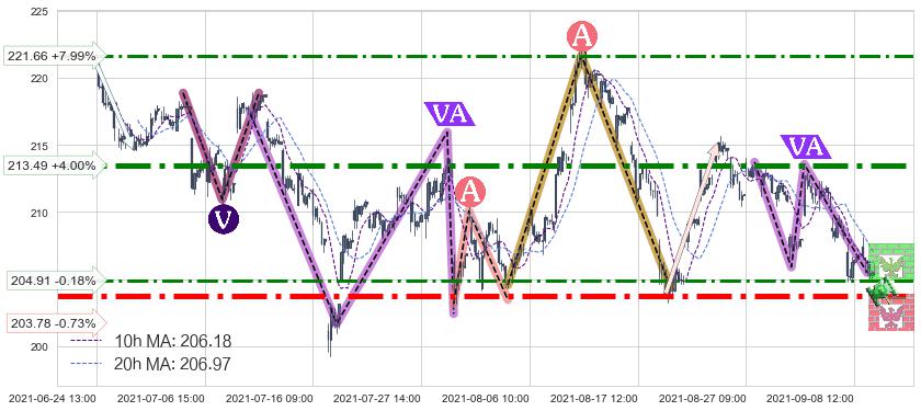 ♘ 阻力价格位204.91,可信任强度68.79%,距离最后交易2021-09-09 14:00形成的收盘价格205.27相差 -0.18%