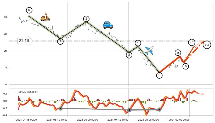 ➢ 波浪理论:临近C点,猜想达到c点后小反弹终止反转下跌 → 下跌 → 【拐点】临近 → 阶段均值回复结束后继续大周期趋势跟踪