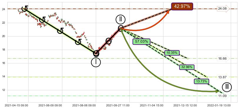 ➣ 循环浪继续向下【平均值】位置(12-28:10, 13.87),匹配聚类样本比例57.78%, 可能性概率32.96%