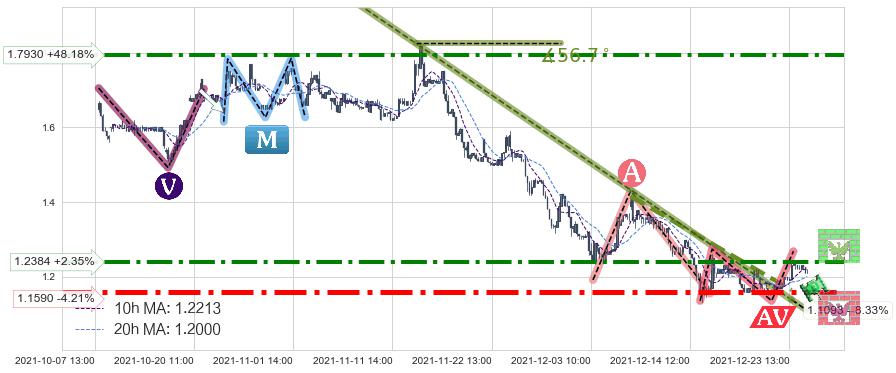 ♘ 阻力价格位1.7930,可信任强度72.63%,距离最后交易2021-12-27 15:00形成的收盘价格1.2100相差 +48.18%
