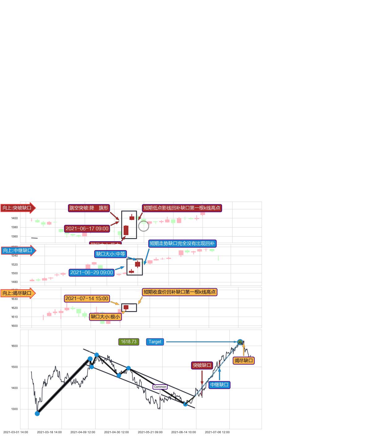 ➢ 2021-07-14 15:00形成:向上跳空【竭尽】缺口