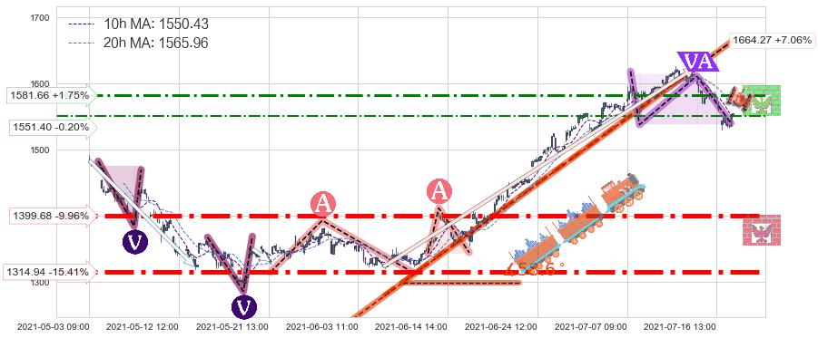 ♘ 阻力价格位1581.66,可信任强度65.06%,距离最后交易2021-07-19 15:00形成的收盘价格1554.51相差 +1.75%