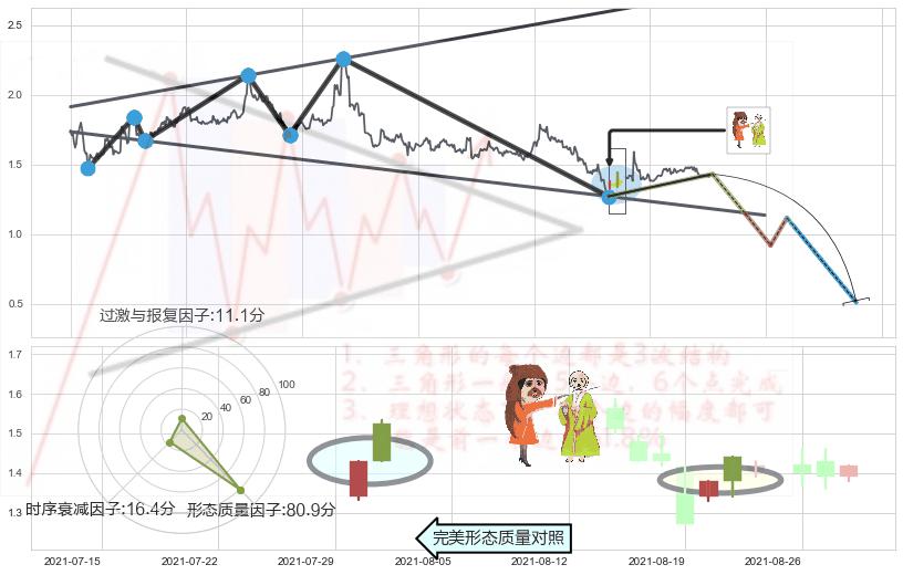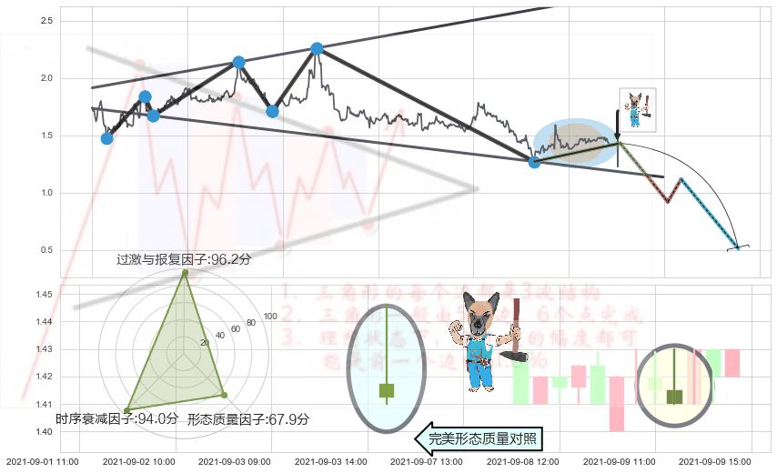 ➢ 下降插入线(坠落线) 🔜 扩散三角反转临近支撑猜想转换阻力下跌 综合量化分数:49.08 【中性】