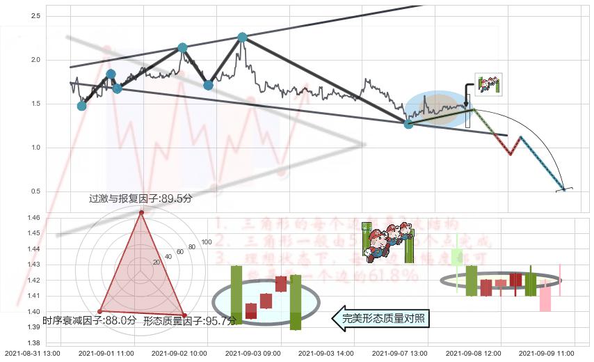 ➢ 🕰 价格走势在2021-09-09 09:00:00至2021-09-09 09:00:00期间形成下降插入线(坠落线),残存影响值:-4.43