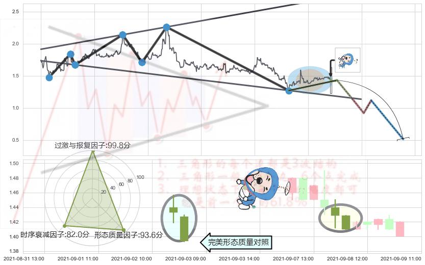 ➢ 🕰 价格走势在2021-09-08 10:00:00至2021-09-08 14:00:00期间形成下降三部曲(降势三鹤),残存影响值:-7.93