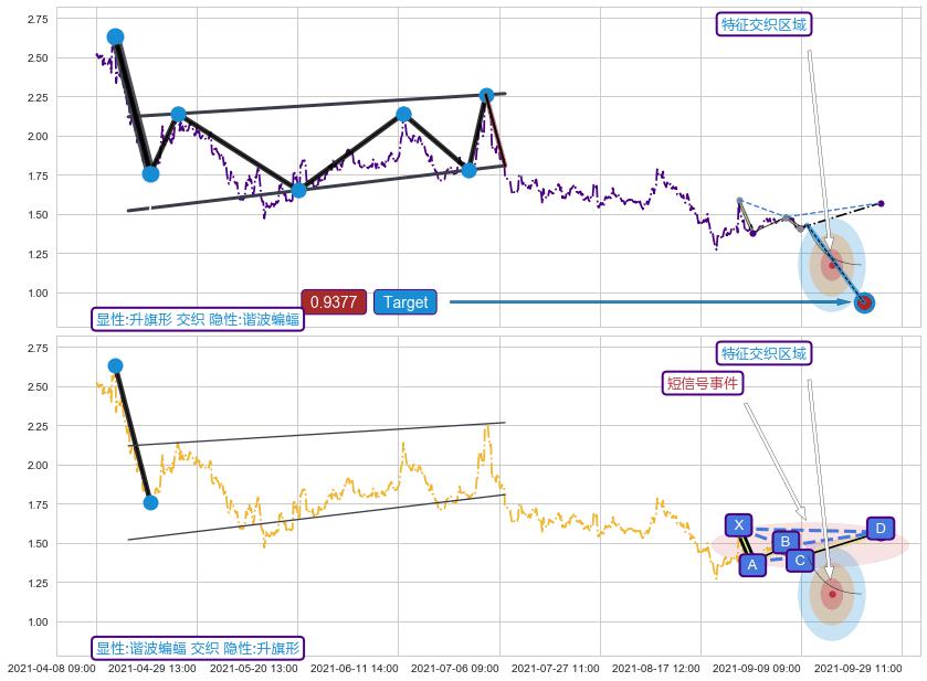 ➢ 谐波蝙蝠属【短级别信号事件】升旗形属【长级别信号事件】长短周期组合信号事件, 短长事件长度比17.78%