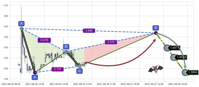 ➣ 未完成【蝙蝠】形态起点X: 08-25:10, 已到达C点: 09-08:14, 预测最终D点: 09-24:11, 共140交易小时