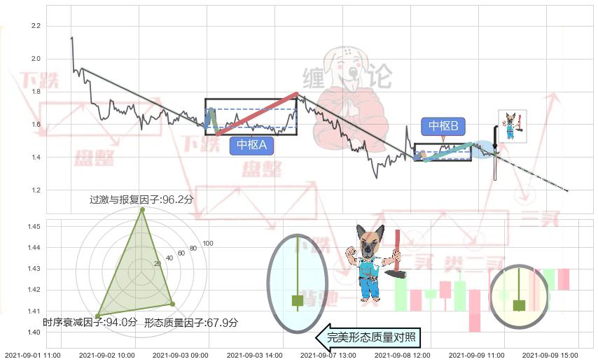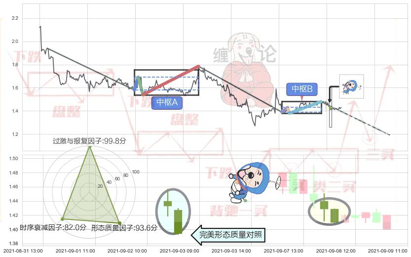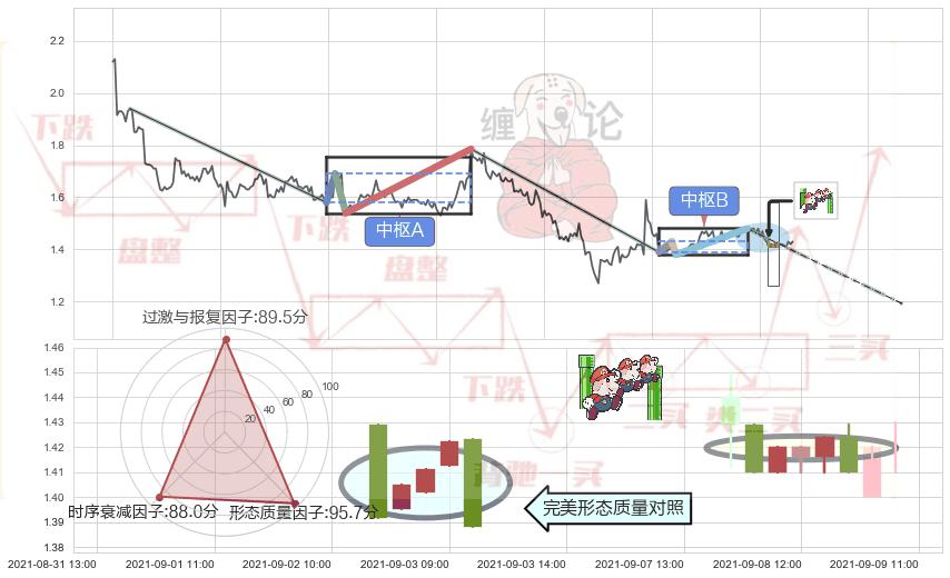 从2021-09-08 10:00至2021-09-09 15:00,共包含12个小时,阶段股价上涨1.44%,阶段股价变动位移路程比: 1 : 4