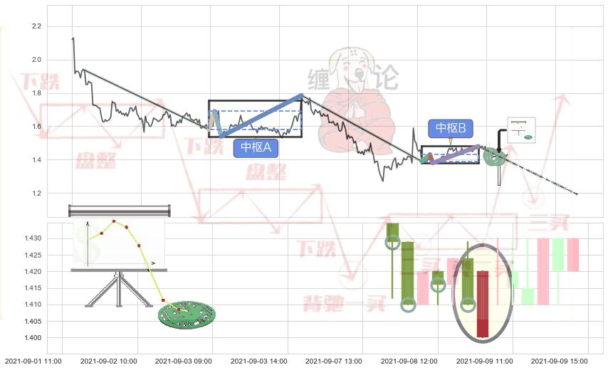 ➢ 缠论中枢点:猜想破位中枢B后持续下拉 → 下跌 → 破位中枢B支撑 → 持续趋势跟踪