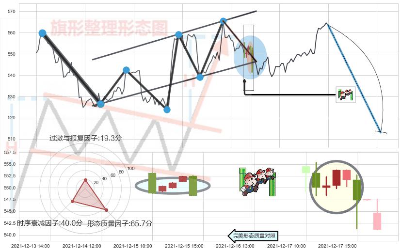 ➢ 🕰 价格走势在2021-12-17 11:00:00至2021-12-17 15:00:00期间形成下降三部曲(降势三鹤),残存影响值:-2.98
