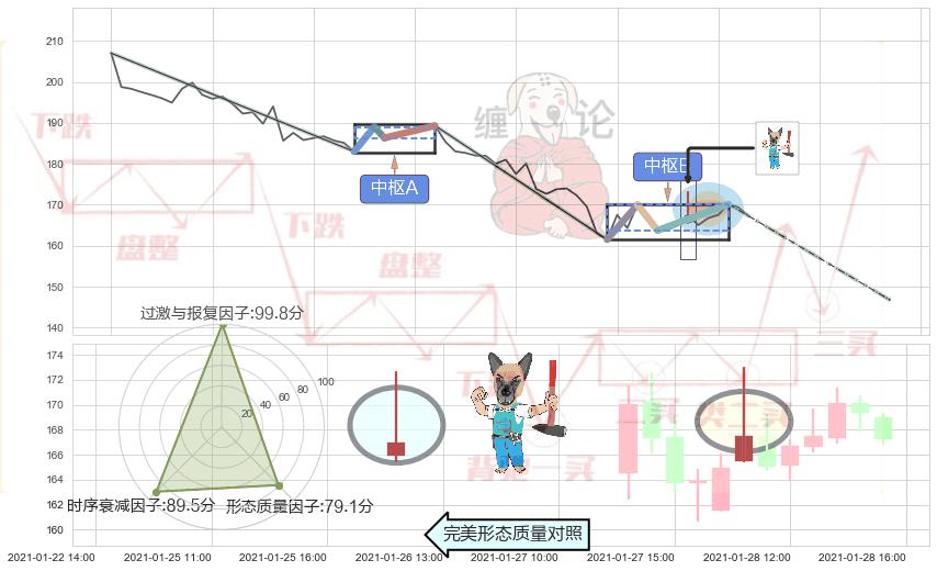 ➢ 缠论中枢点:下降缠中枢B破位后距离1买距离较远,随后猜想后续持续下跌(趋势跟踪)