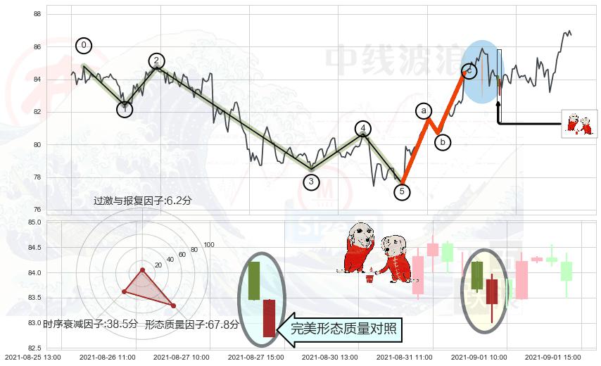 ➢ 🕰 价格走势在2021-09-01 00:00:00至2021-09-02 00:00:00期间形成顶部尽头线(下山虎),残存影响值:-3.05