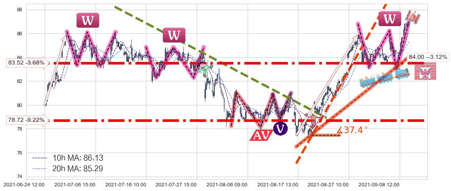 ➣ 预测:2021-09-20 09:00,【试探支撑】稳定目前上涨趋势的前提下,预测价格:86.98