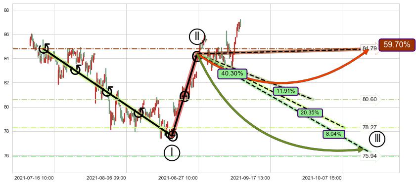 ➢ 循环浪继续向下【最低】位置(10-18:14, 75.94),匹配聚类样本比例19.94%, 可能性概率8.04%