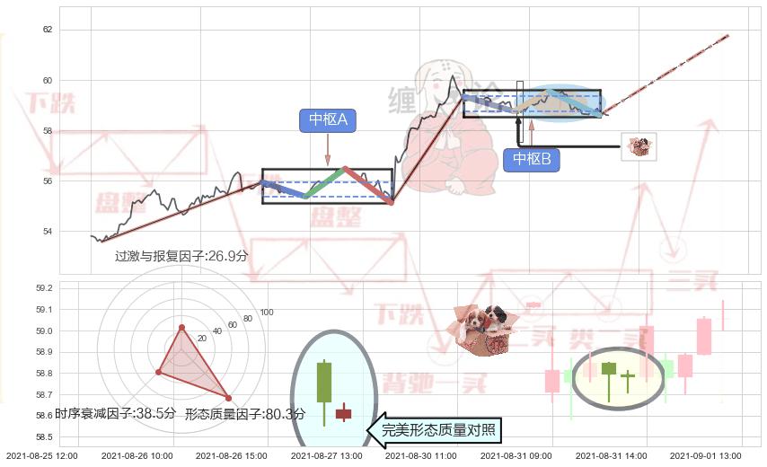 ➢ 上涨镊子线(U形磁铁) 🔜 缠论中枢点突破中枢B阻力拉升 综合量化分数:52.64 【中性】