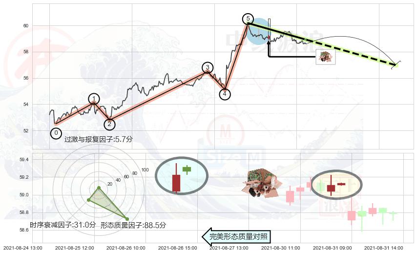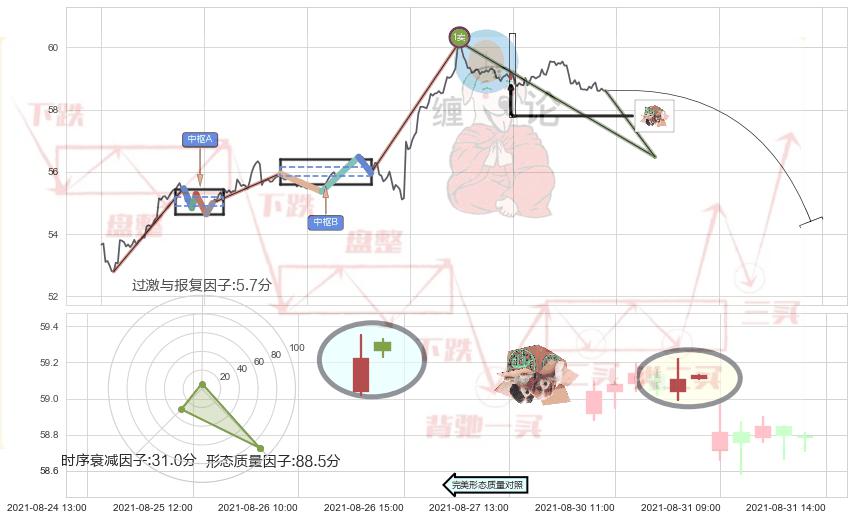 ➢ 🕰 价格走势在2021-08-30 14:00:00至2021-08-30 15:00:00期间形成顶部尽头线(下山虎),残存影响值:-2.26