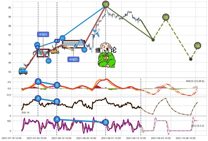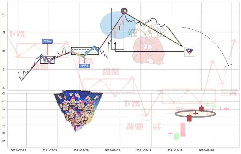 ➣ 缠论买卖点:上升缠中枢AB形成后猜想拐点1卖已到达,猜想后续持续下跌(均值回复)