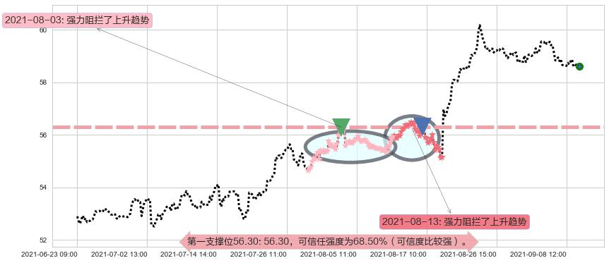 ♘ 支撑价格位56.30,可信任强度68.50%,距离最后交易2021-09-09 15:00形成的收盘价格58.60相差 -3.92%