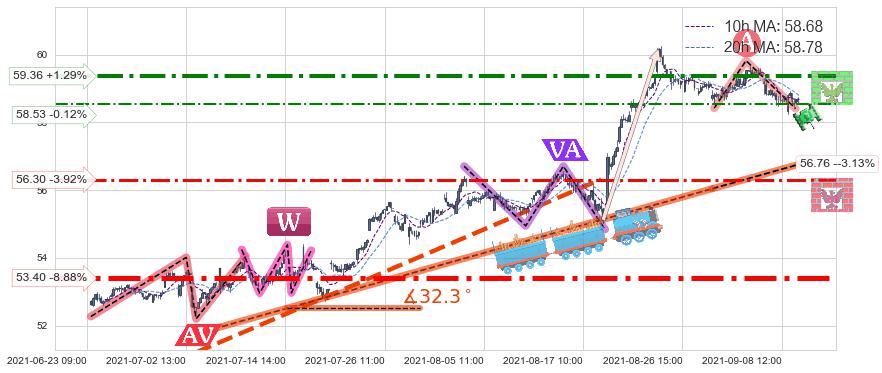 ♘ 阻力价格位58.53,可信任强度45.01%,距离最后交易2021-09-09 15:00形成的收盘价格58.60相差 -0.12%