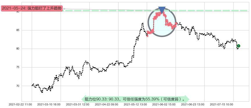♘ 阻力价格位90.33,可信任强度55.39%,距离最后交易2021-07-19 15:00形成的收盘价格80.75相差 +11.86%