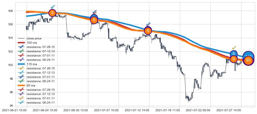 📝 多条均线形成死叉后走势最低价格达到: 93.41