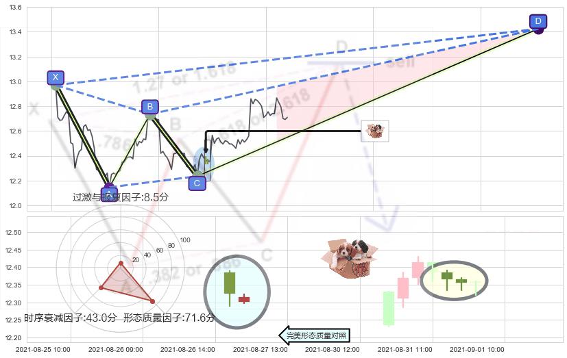 ➢ 未完成【蝴蝶】形态起点X: 08-13:14, 已到达C点: 08-30:14, 预测最终D点: 10-07:11, 共221交易小时