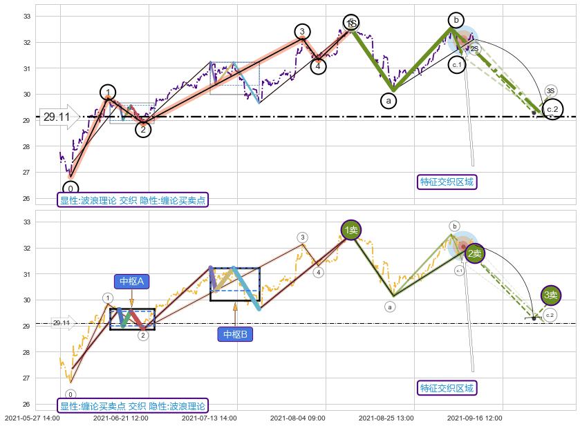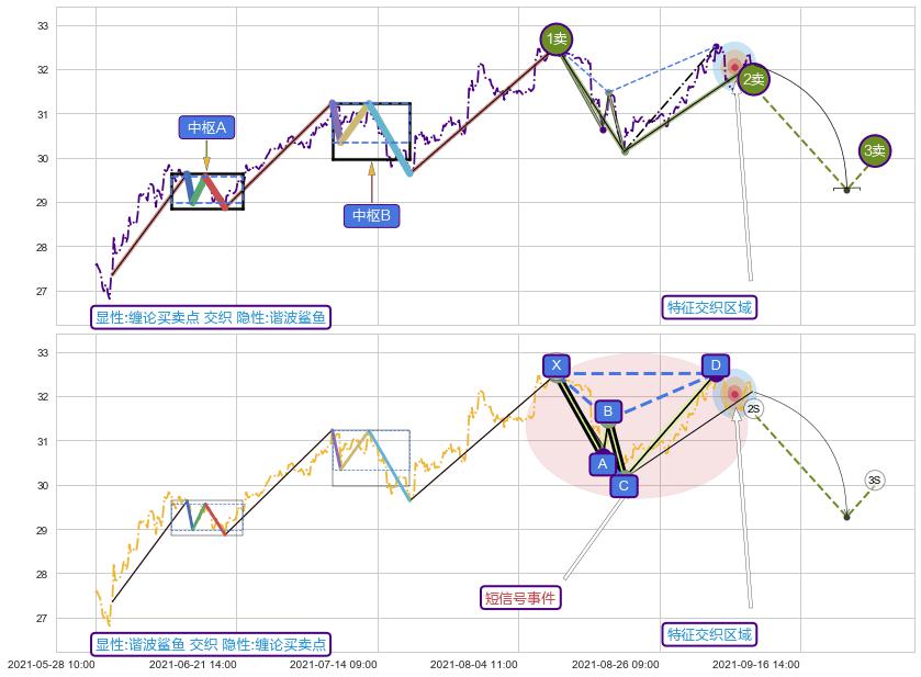 ➣ 缠论买卖点:猜想2卖持续蓄力下跌至3卖 → 下跌 → 风险信号 → 小趋势跟踪