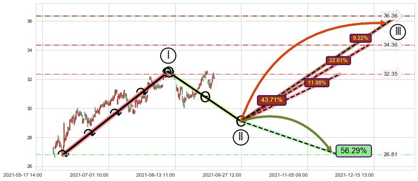➣ 循环浪继续向上【平均值】位置(12-13:11, 34.36),匹配聚类样本比例51.72%, 可能性概率22.61%
