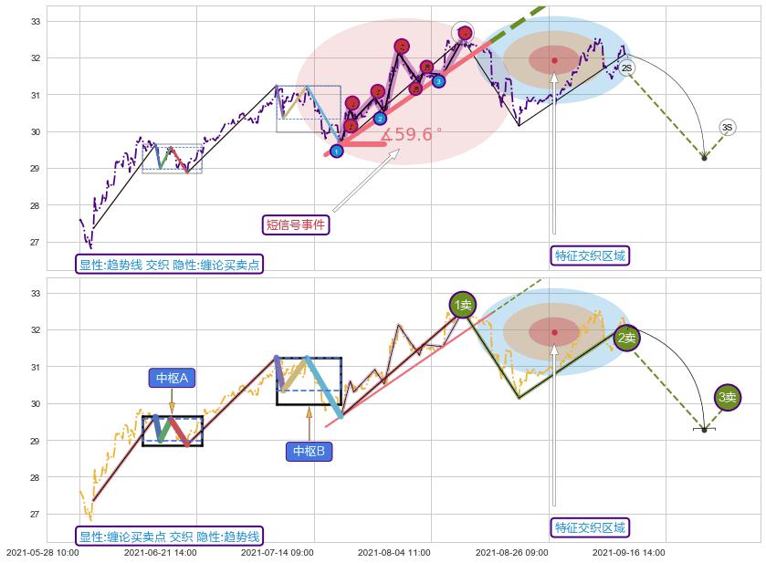 ➣ 缠论买卖点:猜想2卖持续蓄力下跌至3卖 → 下跌 → 风险信号 → 小趋势跟踪