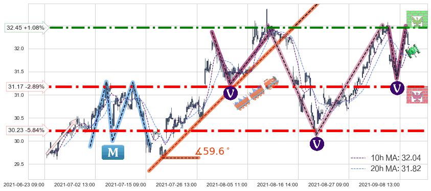 ♘ 阻力价格位32.45,可信任强度76.69%,距离最后交易2021-09-09 15:00形成的收盘价格32.10相差 +1.08%