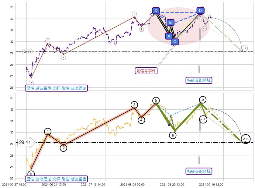 ➢ 谐波鲨鱼属【短级别信号事件】波浪理论属【长级别信号事件】长短周期组合信号事件, 短长事件长度比24.95%