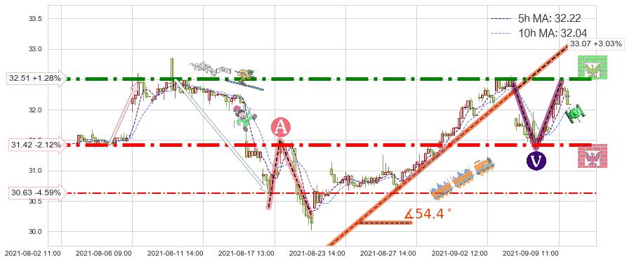 ♘ 阻力价格位32.51,可信任强度93.51%,距离最后交易2021-09-09 15:00形成的收盘价格32.10相差 +1.28%