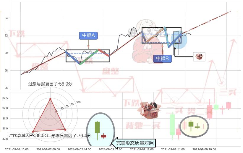 ➣ 【中枢B】:09-02:14-09-09:09,中枢由5笔构成,共20交易小时, ZG=32.16, ZD=31.19