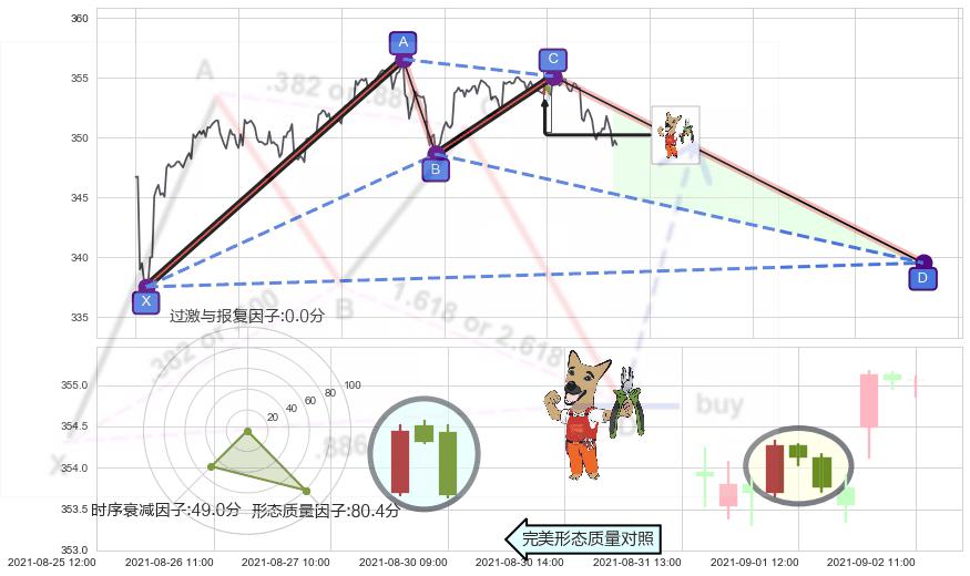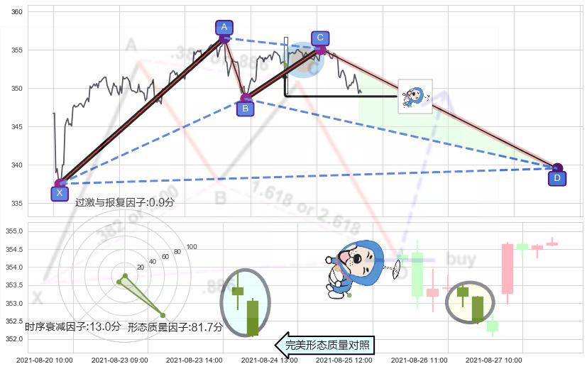 ➢ 下跌螺旋桨 + 谐波蝙蝠c拐点下跌阻力信号叠加后【反向回撤率】中等,【看空】信号叠加【存续影响中等】
