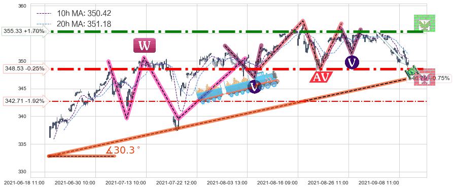 ♘ 阻力价格位355.33,可信任强度97.28%,距离最后交易2021-09-09 14:00形成的收盘价格349.40相差 +1.70%