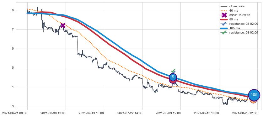 ➣ 40小时均线于(09-07 14:00: 4.14)形成【死叉】基于【死叉历史模型】预测死叉后最低波谷价格: 3.586, 死叉后最低价格3.865,尚未达到预测最低波谷价格, 预期继续下跌